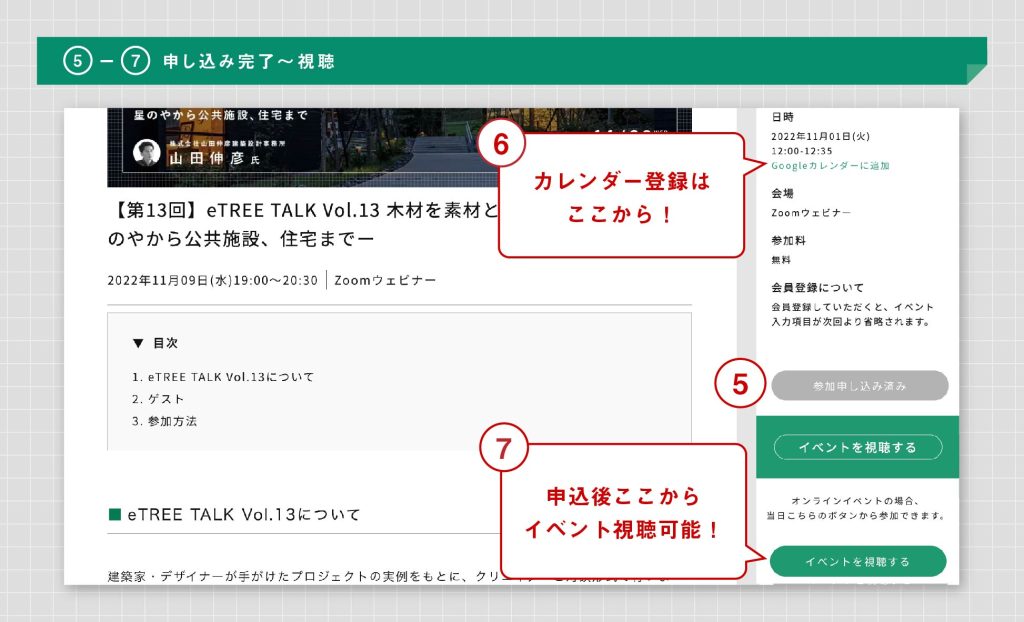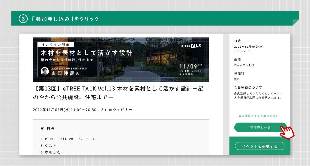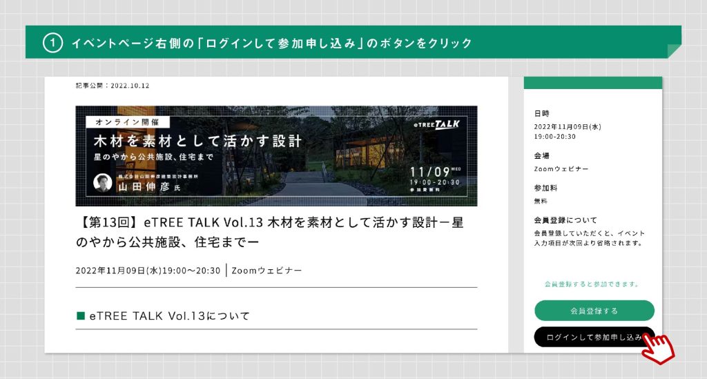こちらの記事では、すでにeTREE会員になられている方向けのイベントの参加方法について、ご紹介しています。