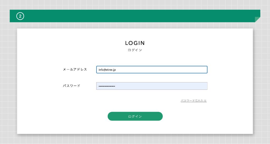 ②ログインページに飛びますので、メールアドレスとパスワードを入力してログインしてください。
